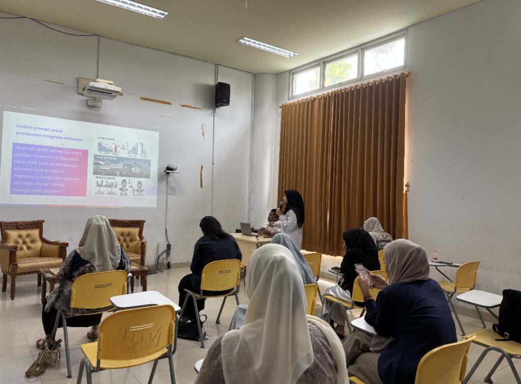 Kegiatan berjalan interaktif dengan sesi tanya jawab antara peserta dan trainer, di mana para guru berbagi pengalaman dan pandangan mereka tentang penerapan AI di dunia pendidikan.