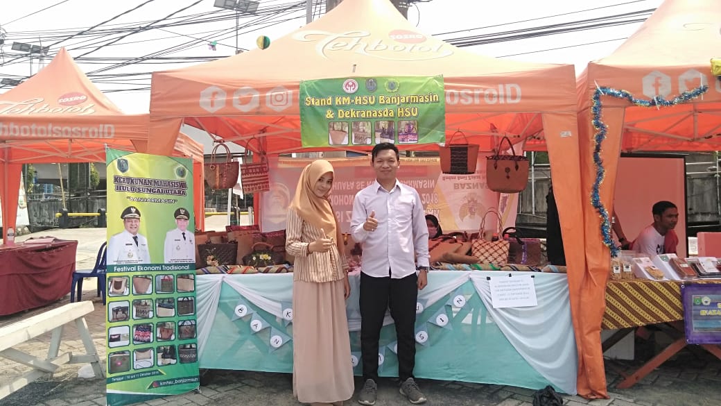BANJARMASIN, Kerukunan Mahasiswa Hulu Sungai Utara (HSU) Banjarmasin bekerja sama dengan Dewan Kerajinan Nasional (Dekranasda) HSU menjual ragam kerajinan tangan di Festival Ekonomi Tradisional yang diadakan Dewan Eksekutif Mahasiswa Fakultas Ekonomi dan Bisnis Islam UIN Antasari, Banjarmasin. Kegiatan ini berlangsung dari 10 Oktober (di gedung Sultan Suriansyah) hingga 11 Oktober 2019 (di UIN Antasari).