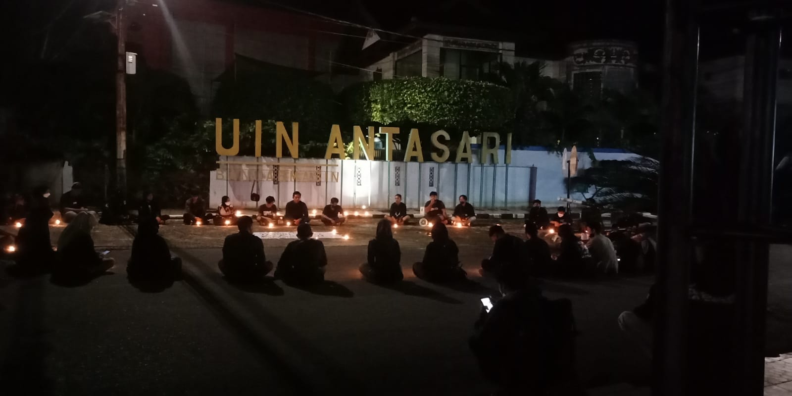 Duduk melingkar sambil menyalakan lilin, mahasiswa UIN Antasari mengenang perjuangan Munir yang tewas oleh racun arsenik di dalam pesawat saat perjalanan dari Indonesia menuju Belanda pada tanggal 7 September tahun 2004 silam.