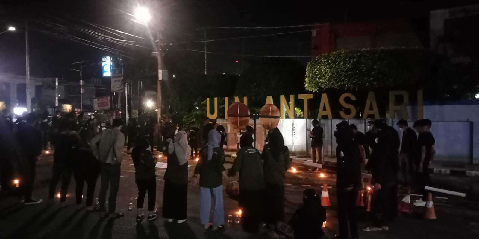KANALKALIMANTAN.COM, BANJARMASIN- Peringati 17 tahun kasus pembunuhan aktivis HAM Munir, puluhan mahasiswa UIN Antasari menggelar aksi keprihatinan di gerbang kampus, Selasa (7/9/2021) pukul 20.00 Wita. Mereka melakukan orasi sekaligus meminta pemerintah berani membongkar dalang kasus pembunuhan yang jadi sorotan internasional itu.