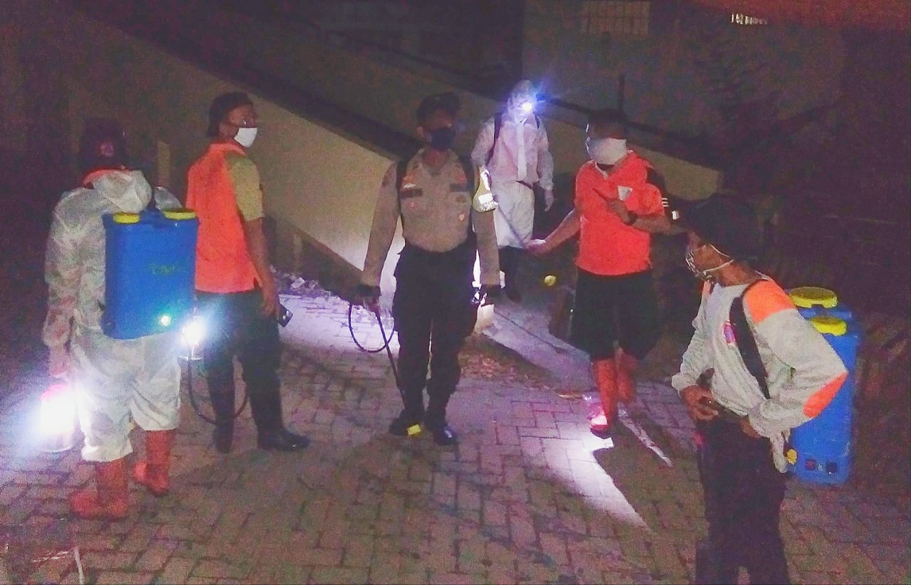 “Waktu yang tepat dilaksanakan penyemprotan disinfektan malam hari, sebab susana sunyi kalau siang hari bisa mengganggu aktifitas para pedagang dan pengunjung pasar,” jelas Kapolsek.