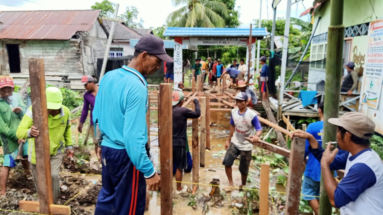 KANALKALIMANTAN. COM, KUALA KAPUAS – Pemerintah Desa (Pemdes) Katunjung, Kecamatan Mantangai, Kabupaten Kapuas, Kalimantan Tengah, sukses merealisasikan penyerapan bantuan dari pemerintah pusat melalui program Dana Desa (DD) tahun anggaran 2020. Pengerjaan pun dilakukan dengan gotong-royong bersama warga.