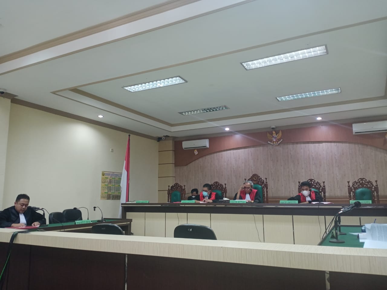 “Karena ancaman hukuman di atas lima tahun maka saudara punya hak, pengadilan akan menunjuk penasihat hukum,” kata ketua majelis hakim.