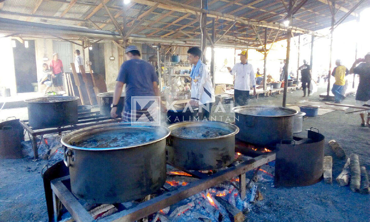 Dalam kerumunan tersebut, terlihat juga KH Zuhdiannor atau Guru Zuhdi yang tampak serius mengarahkan warga agar tidak salah memasukkan bahan masakan. Termasuk menjaga serta mengawas proses penyembelihan hewan tersebut.