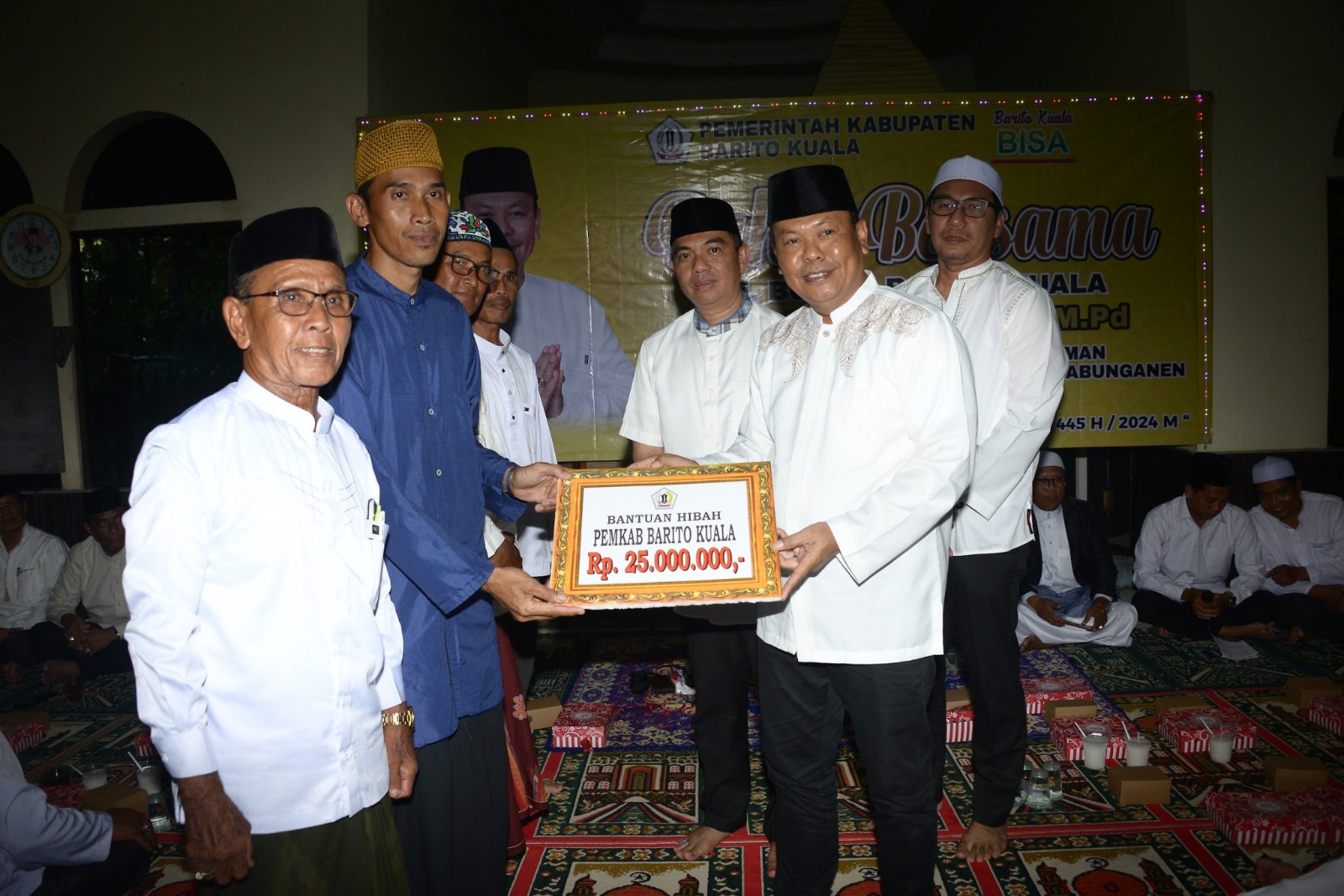 Pada kesempatan itu, Pj Bupati Mujiyat langsung menyerahkan bantuan uang hibah dari Pemkab Barito Kuala sebesar Rp 25 juta, dana CSR Bank Kalsel Rp 10 juta, dan dana CSR dari PT Talenta Bumi Rp 10 juta.
