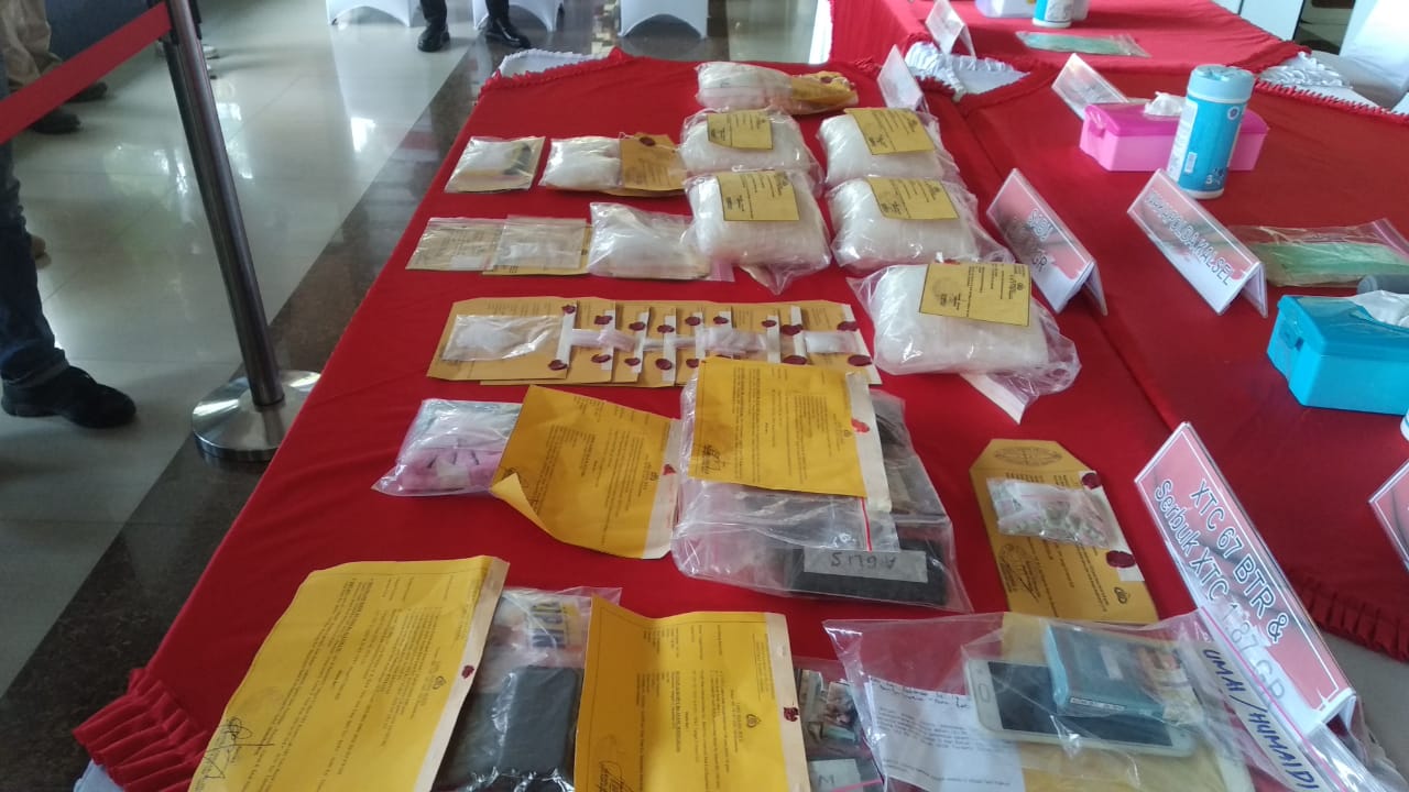 KANALKALIMANTAN.COM, BANJARMASIN – Jajaran Dit Resnarkoba Polda Kalsel berhasil mengamankan sedikitnya 5.565,66 gram atau 5,5 Kg sabu, ekstasi sebanyak 67 butir, serbuk ekstasi seberat 1,87 gram dan obat-obatan jenis happy five sebanyak 1.000 butir.