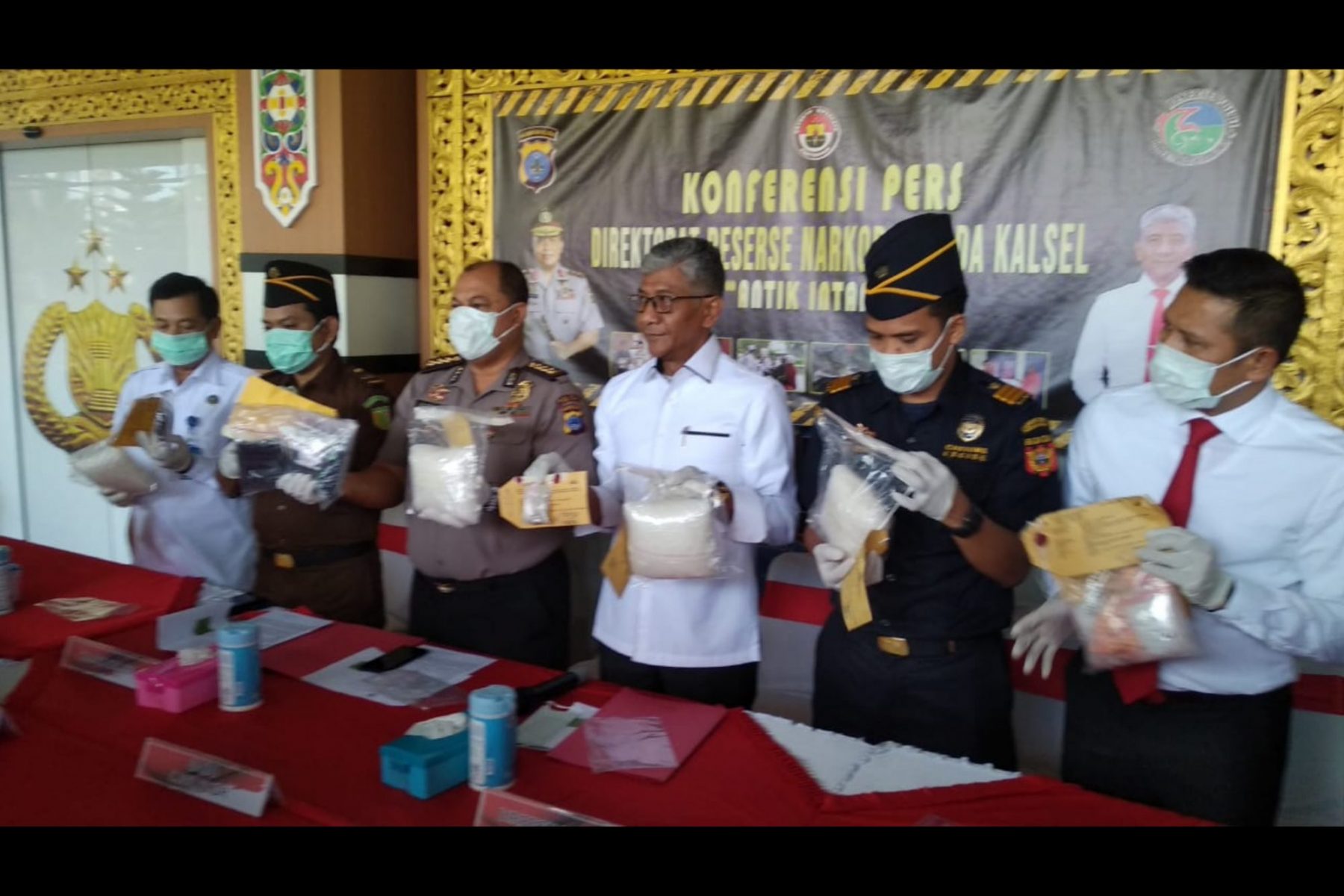 “Sedangkan untuk jajaran Polda Kalsel beserta polres-polres, berhasil mengamankan sabu-sabu seberat 7.413,36 gram, ekstasi sebanyak 128 butir, serbuk ekstasi 2,31 gram, happy five 1.000 butir, karnopen sebanyak 2.794 butir dan daftar G 10.025 butir,” kata Kapolda Kalsel Irjen Pol Yazid Fanani melalui Direktur Resnarkoba Polda Kalsel Kombes Iwan Eka Putra kepada awak media di Mapolda Kalsel, Senin (9/3/2020) pagi.