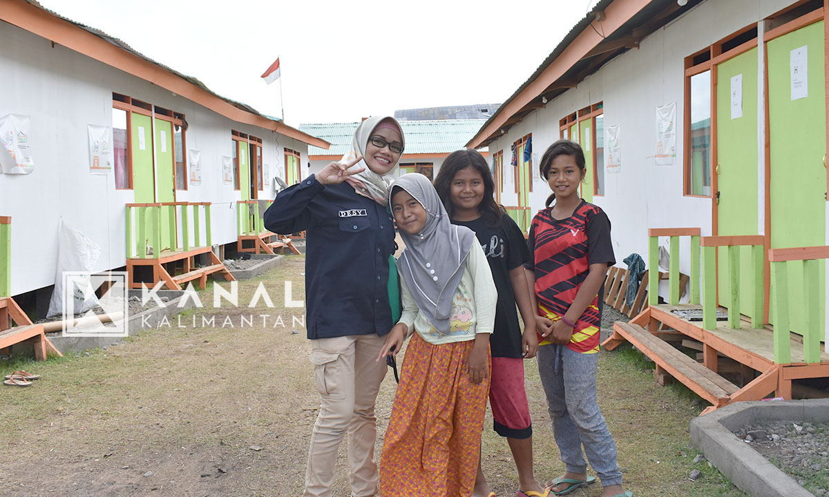 Ditemani tim Aksi Cepat Tanggap (ACT) Kalimantan Selatan Retno Sulisetiyani, saya pun menyempatkan diri meninjau salah satu lokasi kampung yang baru diresmikan pada 18 September 2018. Berbeda jauh dengan kanan kiri dari tempat kami berdiri yang luluh lantak oleh gempa, di tempat ini beberapa bocah telanjang kaki terlihat riang bermain.