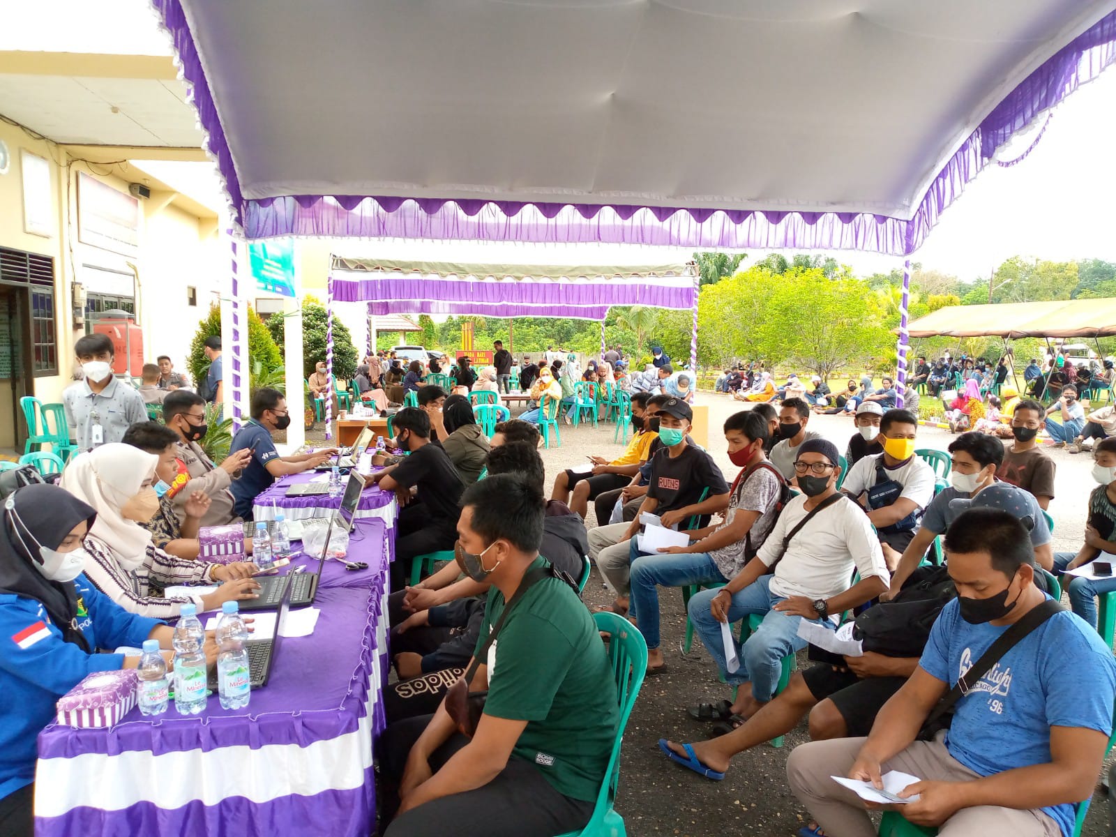 KANALKALIMANTAN.COM, TANJUNG – Kepolisian Daerah (Polda) Kalimantan Selatan (Kalsel) bersama Gabungan Perusahaan Karet Indonesia (Gapkindo) Kalselteng dan PT Bumi Jaya menggelar vaksinasi massal di lingkungan pabrik crumb rubber di Kecamatan Tanjung, Kabupaten Tabalong.