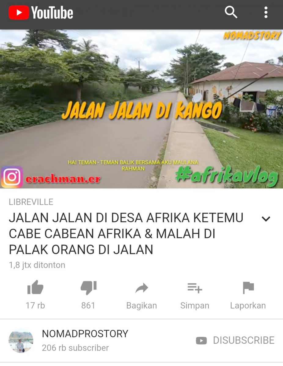 Namun siapa sangka Maulana Rahman , Pemuda asal Banjarbaru, Kalimantan Selatan ini justru malah sukses menjadi youtuber dengan hanya bermodal membagikan aktifitas kesehariannya saja. Bedanya, lokasi pengambilan videonya bukan di Banjarbaru atau di Indonesia melainkan di Gabon, negara Afrika Tengah.