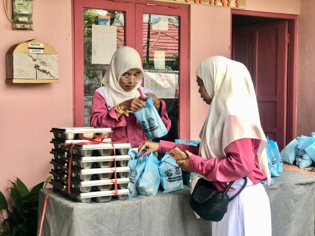 Satuan Pemenuhan Pelayanan Gizi (SPPG) Guntung Manggis 1 menyalurkan 75 porsi makanan yang dikemas dengan ompreng beserta goodie bag berisi kue, susu, dan telur mencegah stunting.