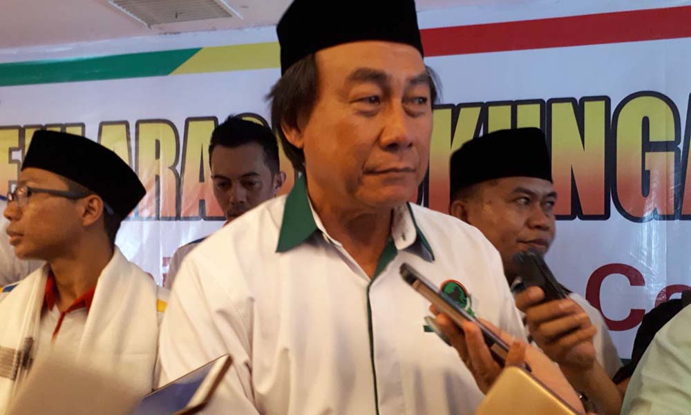 BANJARMASIN, Cawapres 01 KH Ma’ruf Amin menghadiri deklarasi Milenial Religius Center (MRC) dan Relawan Santri Borneo (RSB) di hotel Aston, Banjarmasin, Sabtu (26/1) pagi. Deklarasi ini dihadiri puluhan relawan yang mendukung Capres-Cawapres paslon 01.