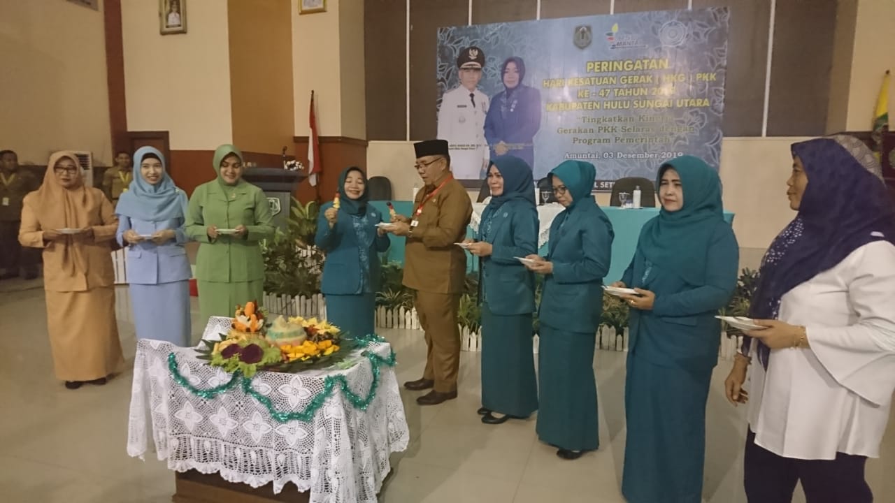AMUNTAI, Ratusan kader PKK hadir dalam peringatan Hari Kesatuan Gerak PKK ke-47 tahun 2019 Kabupaten Hulu Sungai Utara (HSU) di aula DR KH Idham Chalid Amuntai, Selasa (3/12).