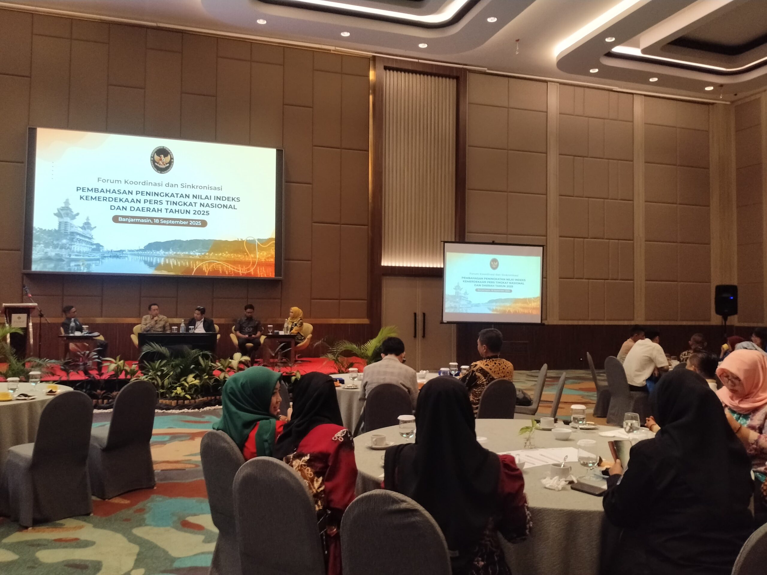 Peningkatan nilai Indeks Kemerdekaan Pers (IKP) Daerah dan Nasional dibahas dalam forum koordinasi dan sinkronisasi di Fugo Hotel Banjarmasin, Kamis (18/9/2025). Foto: fahmi