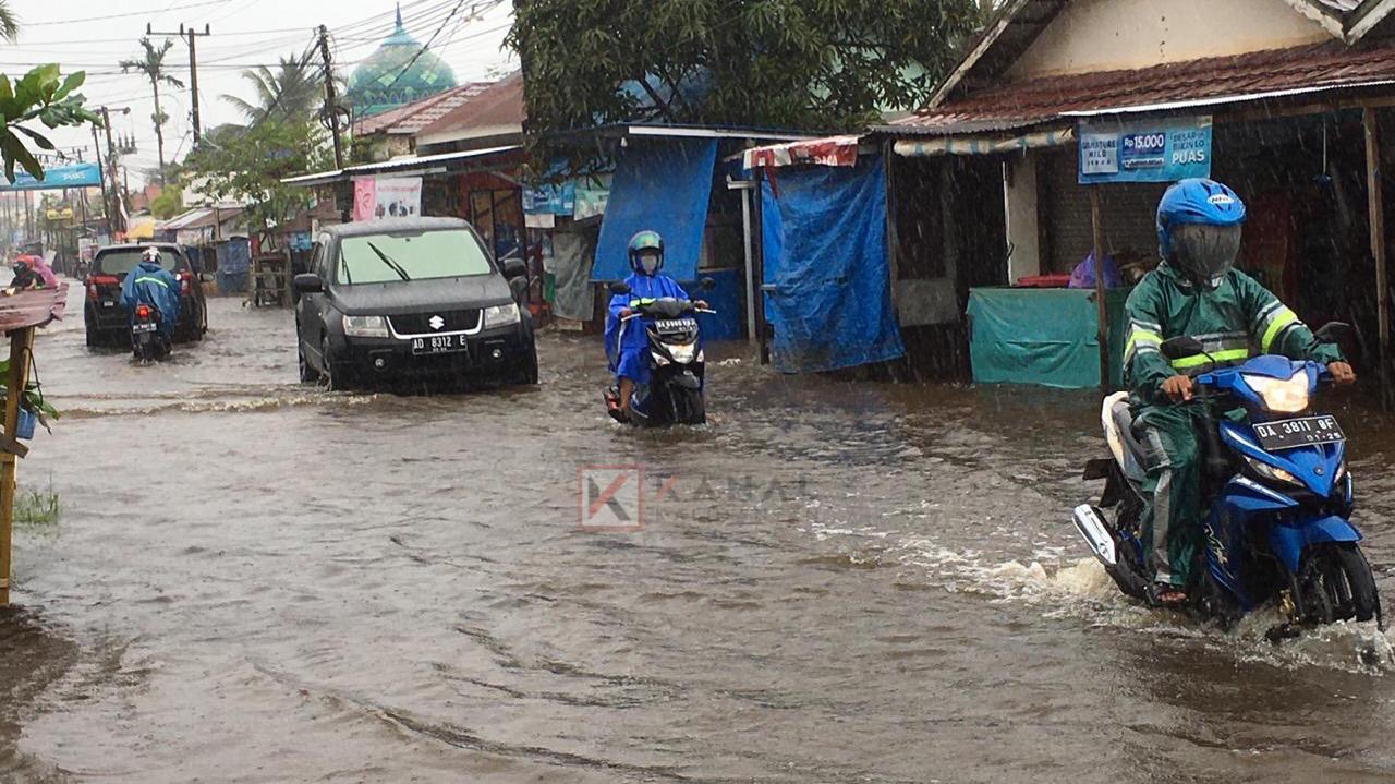 Fasilitas umum jalan terendam di Kota Banjarmasin, banjir dipastikan merusak infrastruktur di sejumlah daerah di Kalsel. Foto: putra