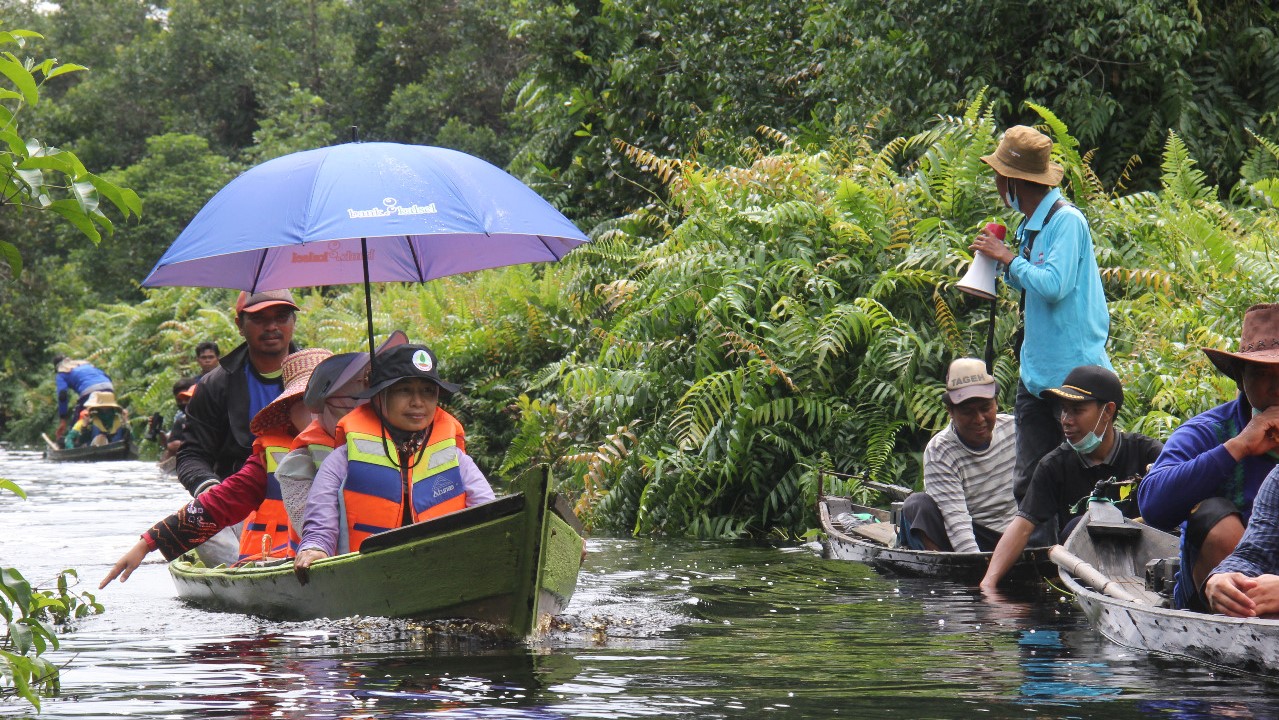 “Kita ajak semua kepala desa yang ada, baik Kepala Desa Pulantani, Tambak Sari Panji, Haur Gading, Jingah Bujur, Keramat, Teluk Haur dan Kepala Desa Tuhuran, sehingga dampak adanya ekowisata Gambut ini nantinya. Para nelayan yang saat ini sulit mencari ikan akhirnya mendapatkan hasil dari mengantar wisatawan,” ujarnya.