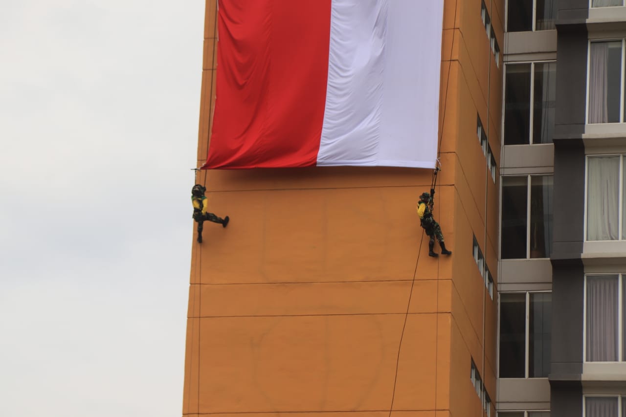 “Pengibaran bendera merah putih tertinggi ini merupakan lambang betapa tingginya keinginan kita untuk memerangi Covid-19 yang saat ini masih terjadi,” ujarnya.