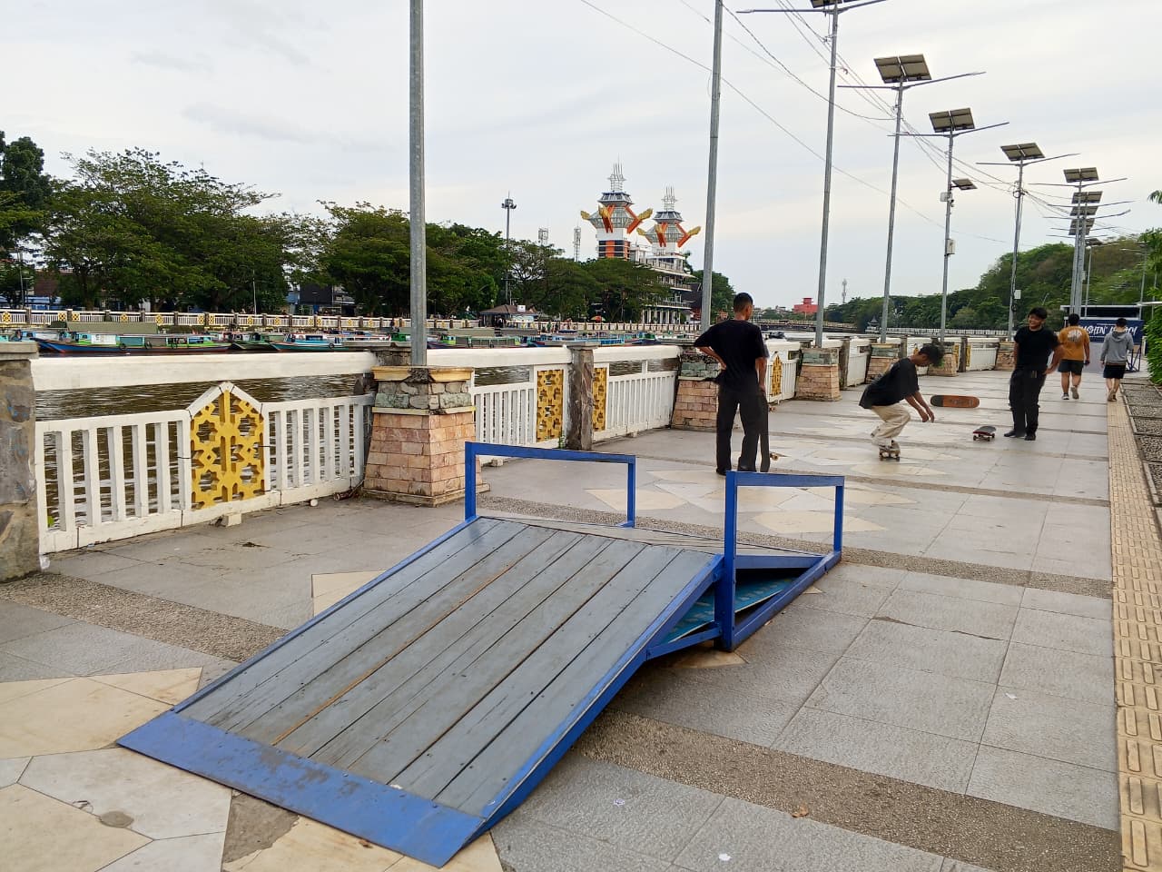 Adit dan teman-temannya yang duduk di bangku SMA memang sering berlatih skateboard di Siring Nol Kilometer Banjarmasin.