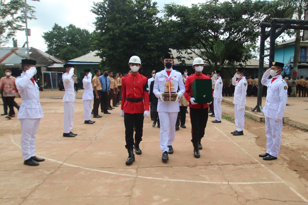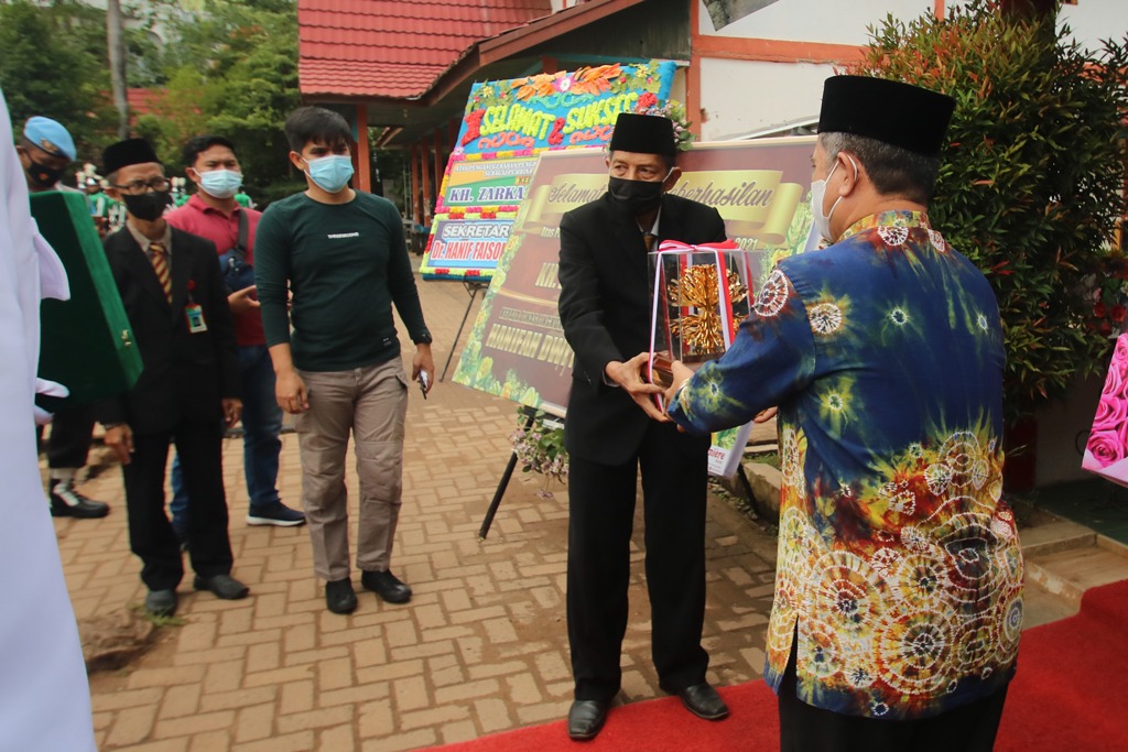 Setibanya di Ponpes Darul Hijrah rombongan disambut Tim Pasukan Pengibar Bendera (Paskibra) Kabupaten Banjar dan santri Ponpes menuju tempat penyerahan penghargaan.