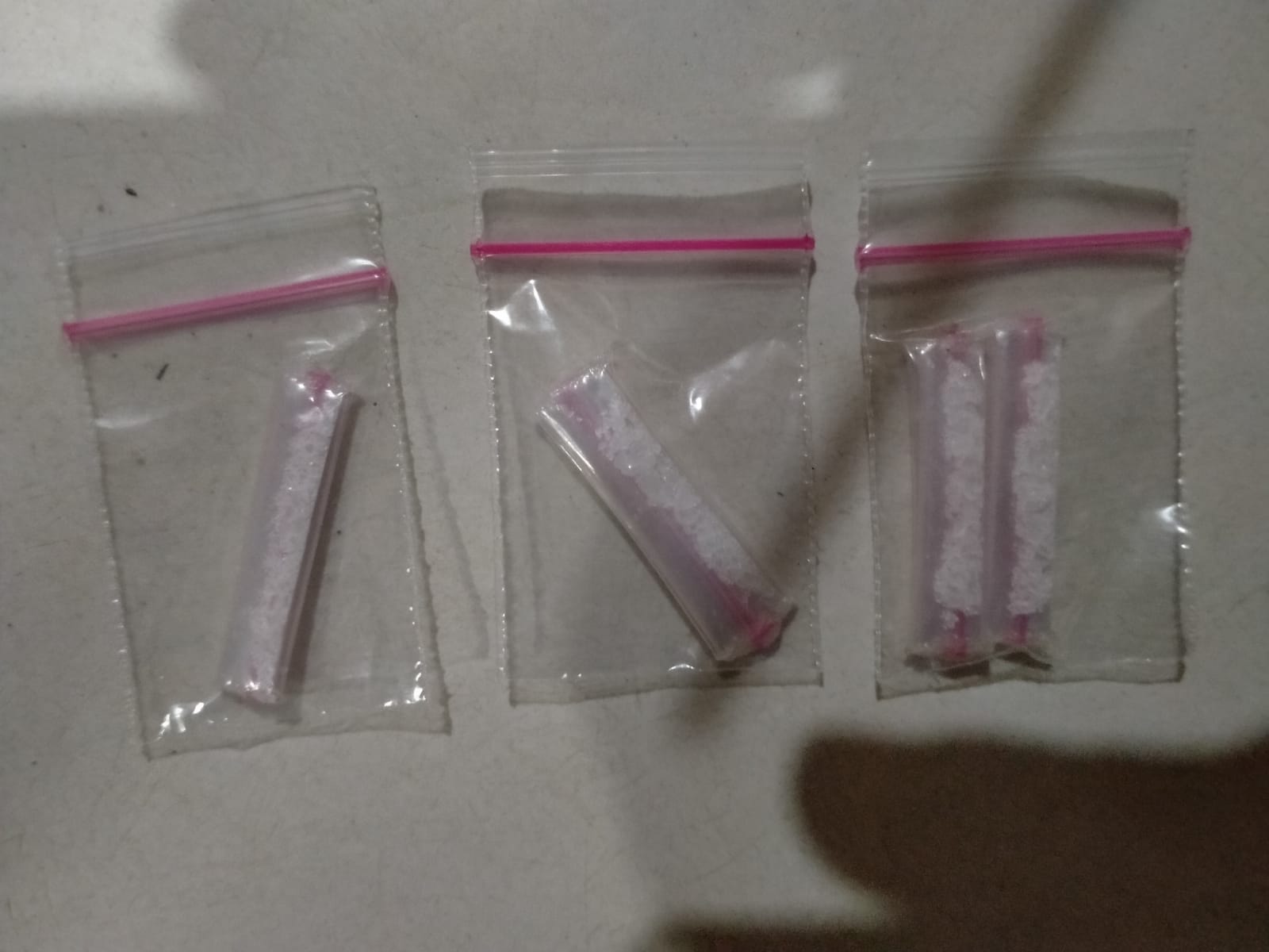 Setelah dilakukan penggeledahan petugas berhasil mengamankan barang bukti berupa empat lembar plastik klip isi sabu. Satu paket berat kotor 0,22 gram dan berat bersih 0,02 gram, satu paket berat kotor 0,21 gram dam berat bersih 0,01 gram, satu paket berat kotor 0,23 gram dam berat bersih 0,03 gram. Dan satu paket berat kotor 0,23 gram dam berat bersih 0,03 gram.
