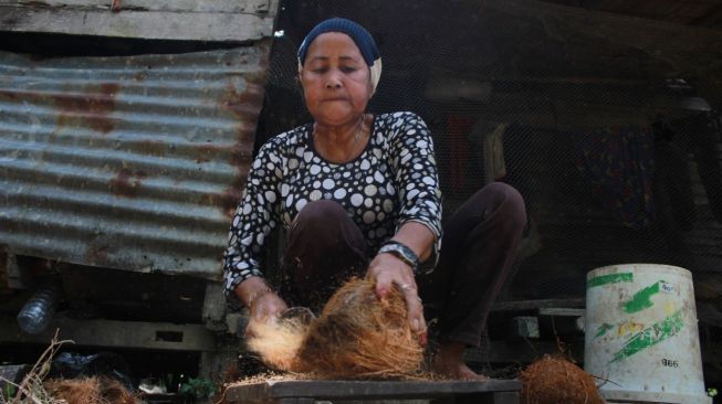 KANALKALIMANTAN.COM – Kesulitan mendapatkan minyak goreng, membuat seorang ibu rumah tangga Yusnia (56) yang berasal dari Desa Sungai Kupah, Kabupaten Kubu Raya, mengolah sendiri minyak goreng dari buah kelapa lokal.