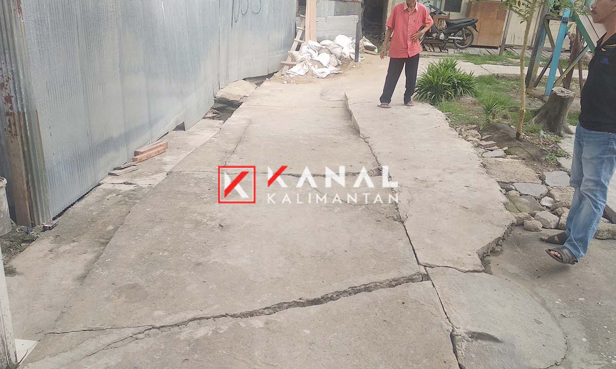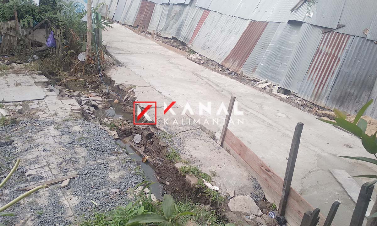 Kanalkalimantan menyambangi lokasi pada Jumat (8/11) sore, kondisi gang selebar 1 meter ini mengalami retak dan miring. Memang ada sejumlah ruas jalan yang dicor untuk perbaikan, namun hanya beberapa meter saja.