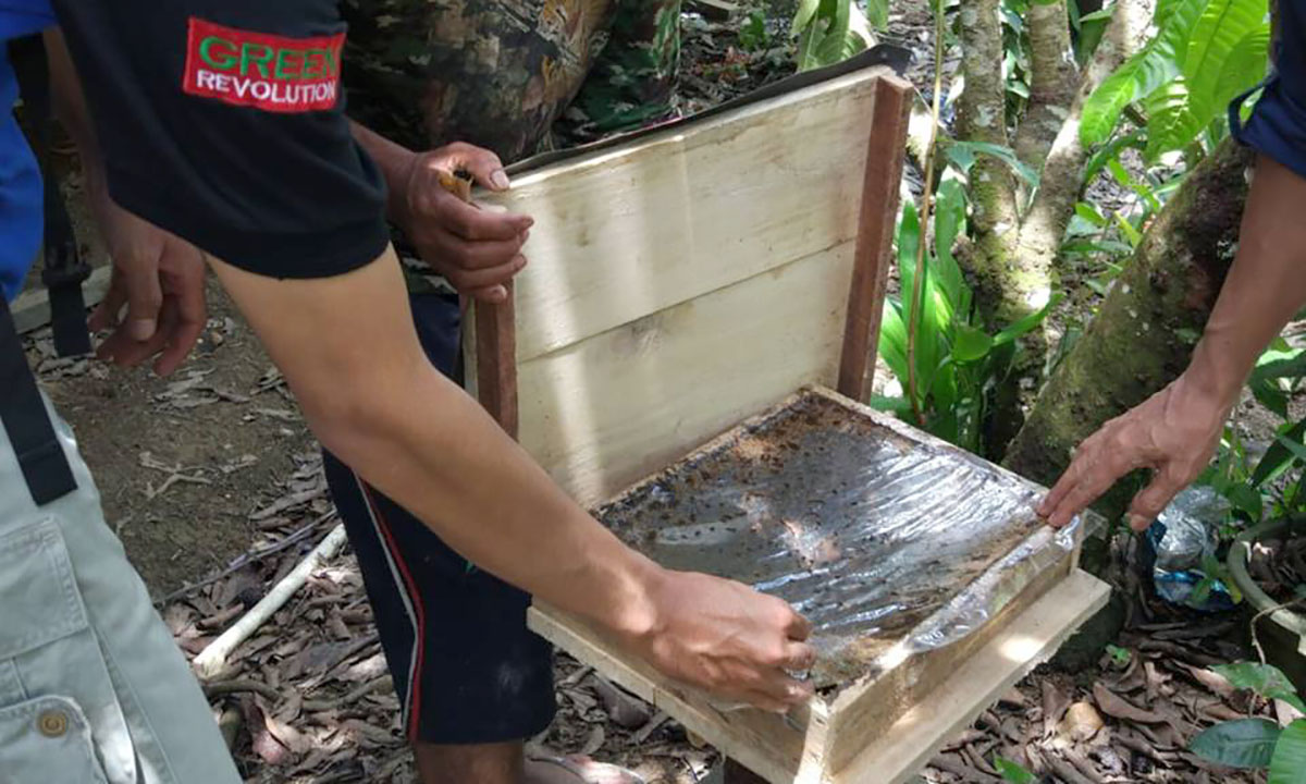 Hasil pengecekan pada KTH Tunas Harapan Maduraya, Desa Gunung Raya Kec. Mantewe diketahui bahwa jumlah stup lebah madu kelulut lengkap 100 buah dan telah tersebar di 4 lokasi. Semua stup dalam keadaan baik dan sudah berproduksi/sudah naik serta siap dipanen.