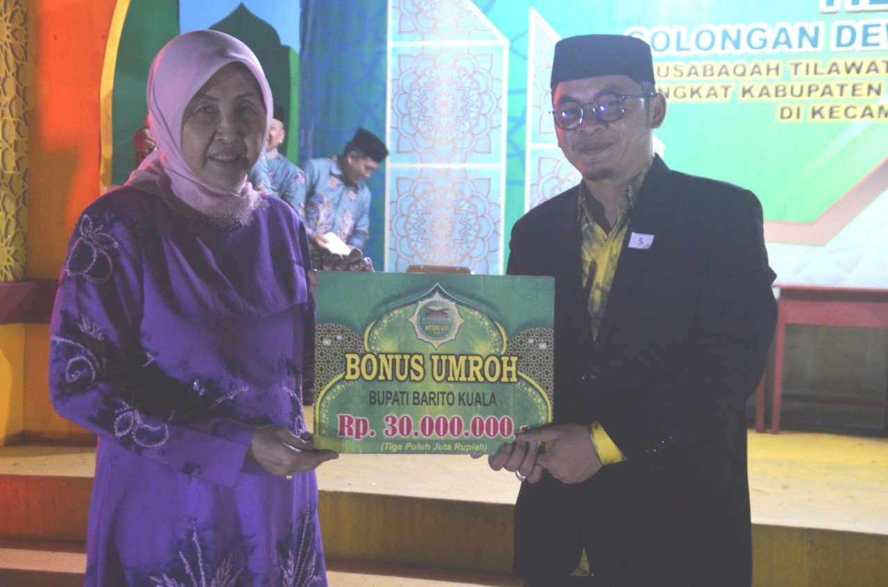 KANALKALIMANTAN.COM, MARABAHAN– Bupati Hj Noormiliyani AS tutup pelaksanaan Musabaqah Tilawatil Quran Nasional (MTQN) ke-53 Tingkat Kabupaten Barito Kuala (Batola) Tahun 2022 di Kecamatan Cerbon yang dimulai, Jumat (17/06/2022).