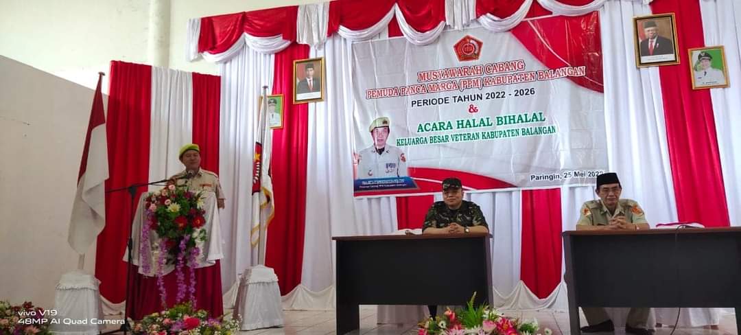 KANALKALIMANTAN.COM, PARINGIN – Pemuda Panca Marga (PPM) Kabupaten Balangan menggelar Musyawarah Cabang (Muscab) sekaligus halalbihalal bersama Keluarga Besar Veteran Kabupaten Balangan di Gedung Juang, Rabu (25/5/2022).