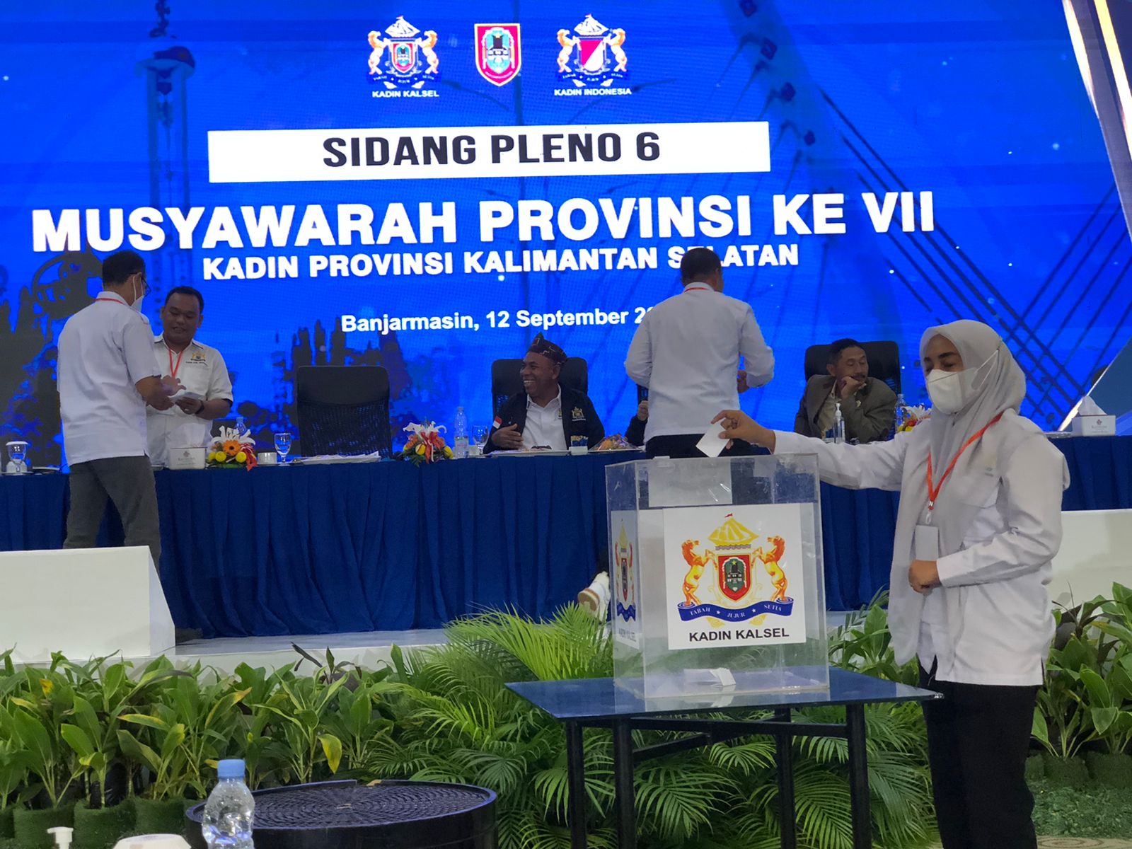 Muprov VII Kadin Kalsel digelar untuk memilih Ketum Kadin Provinsi Kalsel sekaligus promatur periode 2022-2027 ini dihadiri ketua dan pengurus Kadin dari 13 kabupaten/kota yang berhasil dihimpun menjadi 68 suara.