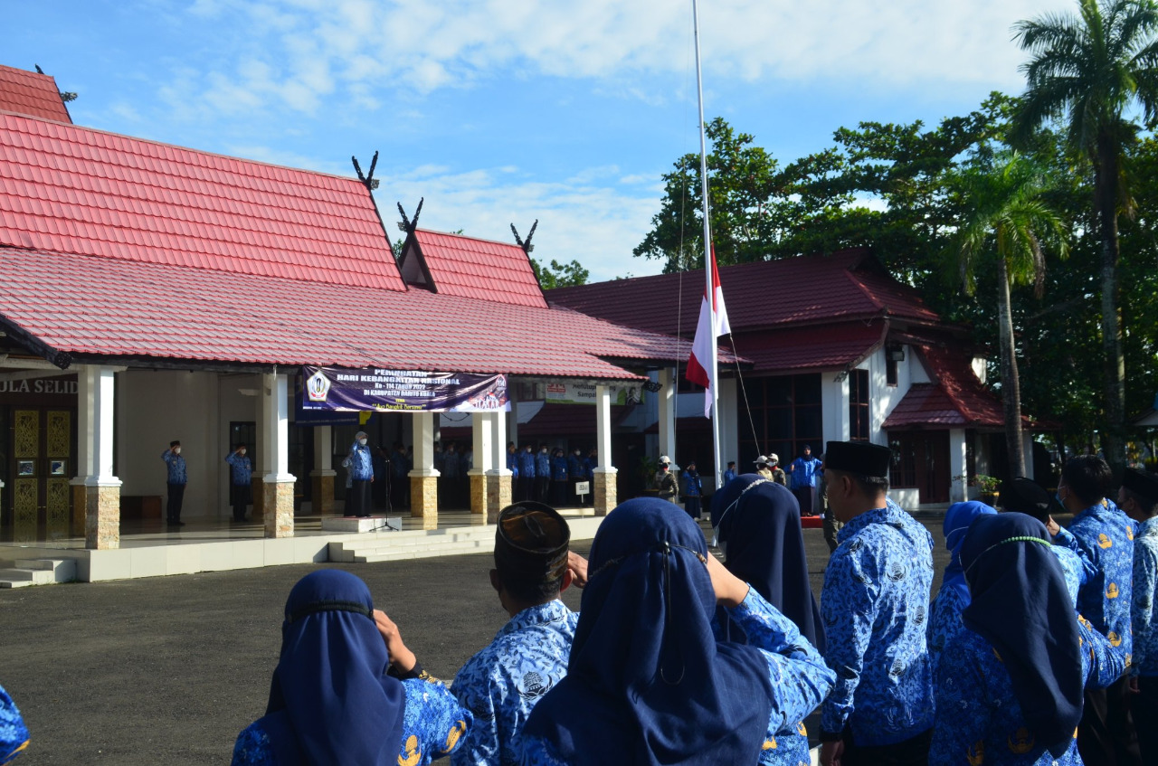 Upacara yang berlangsung di Halaman Sekretariat Daerah (Setda) Kabupaten Batola ini dihadiri Wakil Bupati (Wabup) H Rahmadian Noor, Sekretaris Daerah (Sekda) H Zulkipli Yadi Noor, para pimpinan SKPD, para pejabat administrator, pejabat pengawas dan seluruh ASN di lingkup Pemkab Batola.