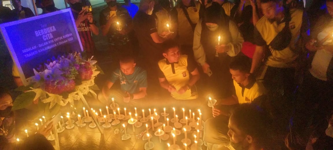 Nyala Lilin dan Doa Bersama PSSI Barsel Atas Tragedi Kanjuruhan
