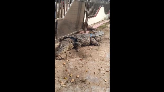 “Iya, memang di sini sedang dalam kondisi banjir dengan kedalaman selutut orang dewasa. Namun dengan sigap warga langsung mengevakuasi buaya itu dengan langsung mengikat badannya,” jelasnya.