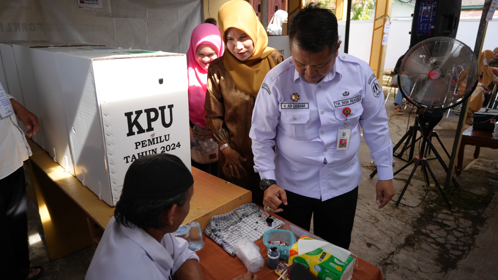 Di TPS 10 Desa Kota Raja Adi Lesmana beserta isteri tampak membaur dan bercengkerama dengan warga sekitar yang turut mengantre untuk menggunakan hak pilihnya.