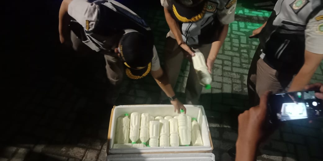 Dalam operasi gabungan tersebut ditemukan barang kargo dalam truk berupa 11 box yang berisi produk dari hewani berupa susu sapi dan kambing tanpa dokumen dan tanpa label pada botol kemasan.