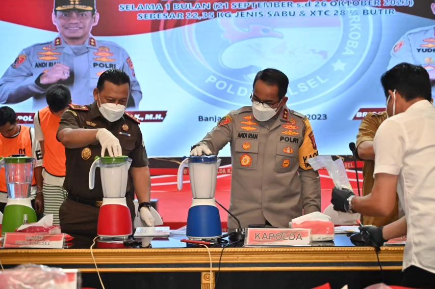 Kapolda Kalsel Irjen Pol Andi Rian Djajadi merincikan barang bukti narkotika yang berhasil disita antara lain sabu seberat 24,54 Kg, ekstasi 36 butir, obat daftar G 3.907 butir, baya 172 botol, poopees 64 botol.