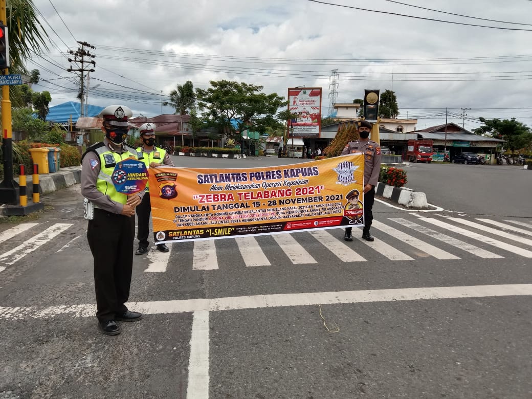 KANALKALIMANTAN. COM, KUALA KAPUAS – Satlantas Polres Kapuas menggelar Operasi Zebra Telabang 2021 cipta keamanan, keselamatan, ketertiban dan kelancaran lalu lintas (Kamseltibcarlantas).