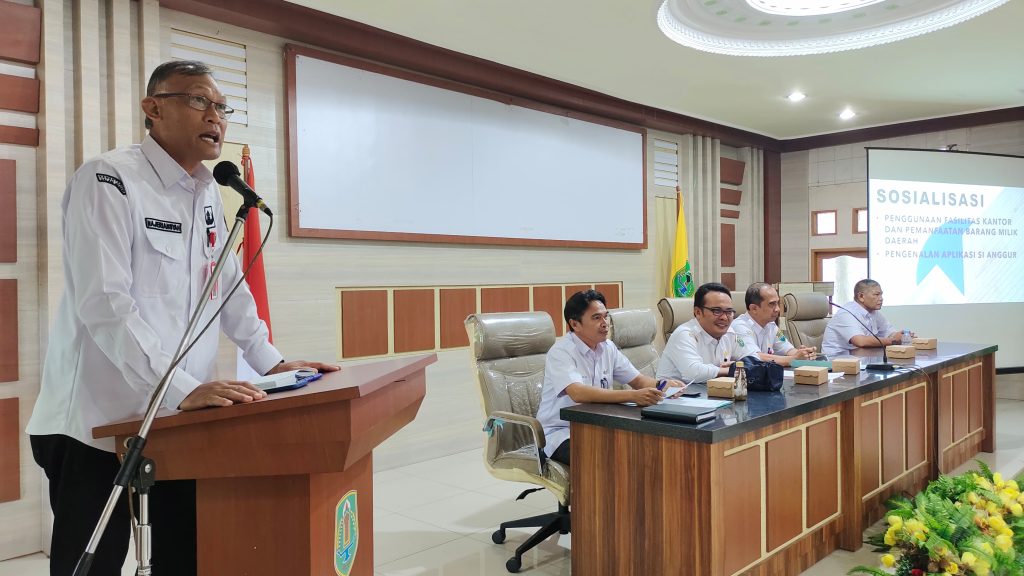 KANALKALIMANTAN.COM, AMUNTAI – Badan Pengelolaan Keuangan dan Aset Daerah (BPKAD) Kabupaten Hulu Sungai Utara (HSU) terus berupaya fokus melakukan penata pengelolaan barang milik daerah. Salah satunya dengan menggelar sosialisasi penggunaan fasilitas kantor dan pemanfaatan barang milik daerah (BMD) sekaligus memperkenalkan aplikasi ‘Si Anggur’ di aula Gedung Agung, Rabu (3/1/2024).