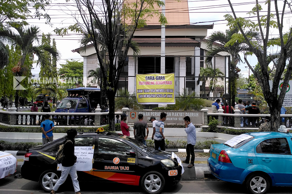 BANJARMASIN, Maraknya angkutan orang berbasis online alias taksi online di Kalsel, membuat taksi konvensional melalui Organda Kalsel gerah. Kegerahan ditunjukkkan dengan unjuk rasa ke Dewan Perwakilan Rakyat Daerah (DPRD) Kalsel, Senin (2/10).