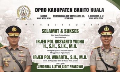 KANALKALIMANTAN.COM, MARABAHAN – Pimpinan dan anggota DPRD Kabupaten Barito Kuala (Batola) memberikan ucapan selamat kepada Irjen Pol Rosyanto Yudha Hermawan, S.I.K., S.H., M.H., yang resmi dilantik...