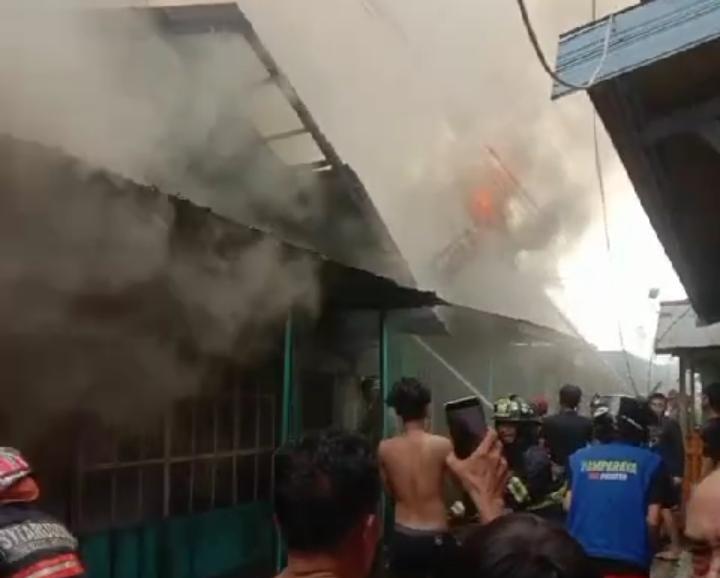 Kebakaran di Gang II Indrapura dan Gang Hidayah Kelurahan Telawang, Kecamatan Banjarmasin Barat, Kota Banjarmasin, Rabu (12/7/2023) sore. Foto: ist
