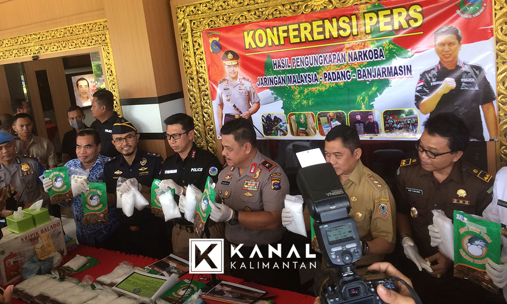 Kapolda mengatakan, dari Tanah Bumbu biasanya mandapatkan laporan skala kecil saja. Tapi akhirnya mendapat skala besar seberat 18 kg sabu dikemasan dalam kemasan kardus “Kripik Balado Asli Padang” dan beberapa kali lolosan dalam bandara di beberapa wilayah di Indonesia.