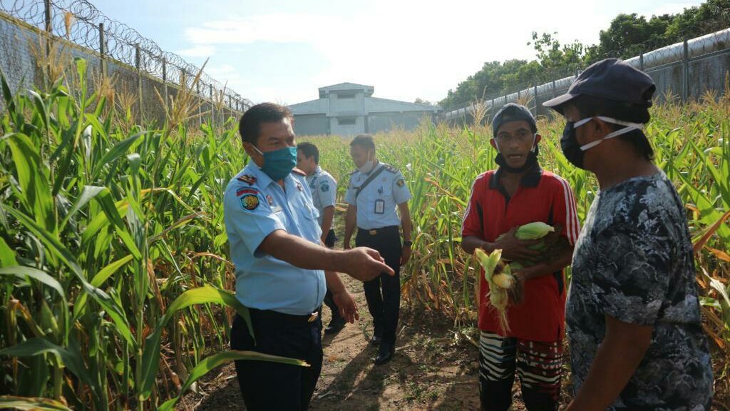 Panen Jagung Perdana Hasil Perkebunan Narapidana di Lapas Karang Intan