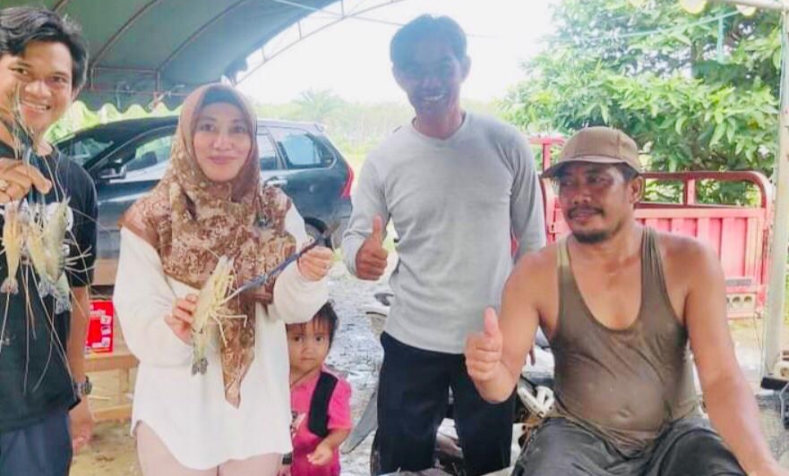 KANALKALIMANTAN.COM, BATULICIN – Kepala Dinas Perikanan Kabupaten Tanah Bumbu (Tanbu) Yulian Herawati menghadiri panen perdana budidaya udang galah warga di Desa Manuntung, Kecamatan Kusan Hulu, Senin (16/5/2022).