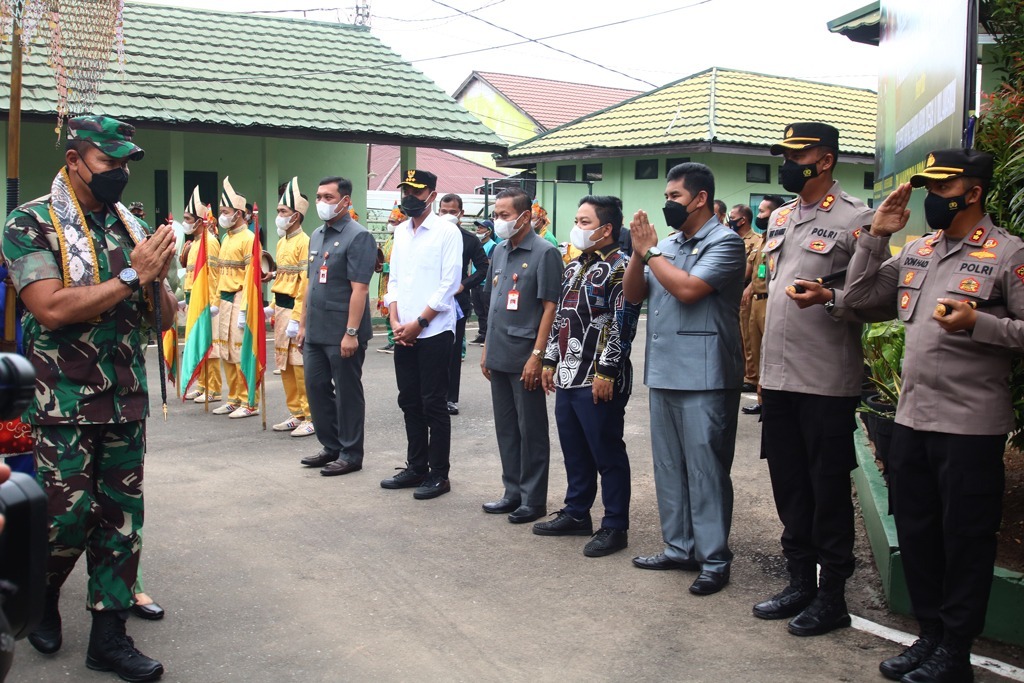 Setibanya di Makodim 1006 Banjar, Pangdam VI/Mulawarman dan istri beserta Para Asisten Kasdam VI/Mulawarman yang didampingi Danrem 101/Antasari Brigjen TNI Firmansyah disambut Dandim 1006 Banjar Letkol Inf Imam Muchtarom, menerima jajar kehormatan dari Prajurit Kodim 1006 Banjar dan disambut dengan tarian selamat datang Sinoman Hadrah.
