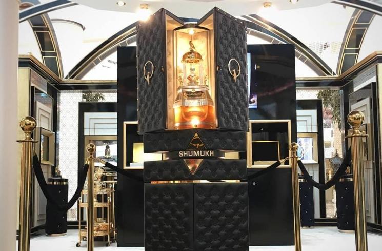 Dan gak lupa ukiran-ukiran tersebut juga dihiasi dengan batu berlian. Gak cuma itu, botol Shumukh juga disimpan di dalam peti berlapiskan bantalan kulit warna hitam yang tingginya mencapai 2 meter.