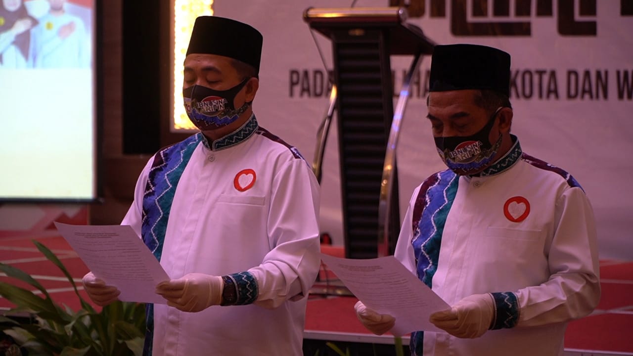 KANALKALIMANTAN.COM, BANJARMASIN – Pasangan Calon Wali Kota dan Wakil Wali Kota Banjarmasin, H Ibnu Sina dan Arifin Noor mengikuti Deklarasi Kampanye Damai dan Sehat pada Pilkada Banjarmasin, yang digelar KPU Kota Banjarmasin di Hotel GSign Banjarmasin, Minggu (27/9/2020) siang.