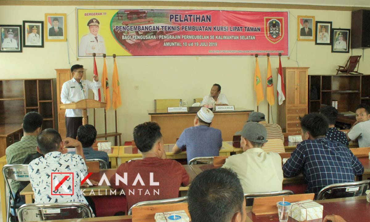 AMUNTAI, Dinas Perindustrian Provinsi Kalimantan Selatan menggelar pelatihan pengembangan teknis pembuatan kursi lipat taman bagi pengusaha, pengrajin permeubelan se Kalimantan Selatan.