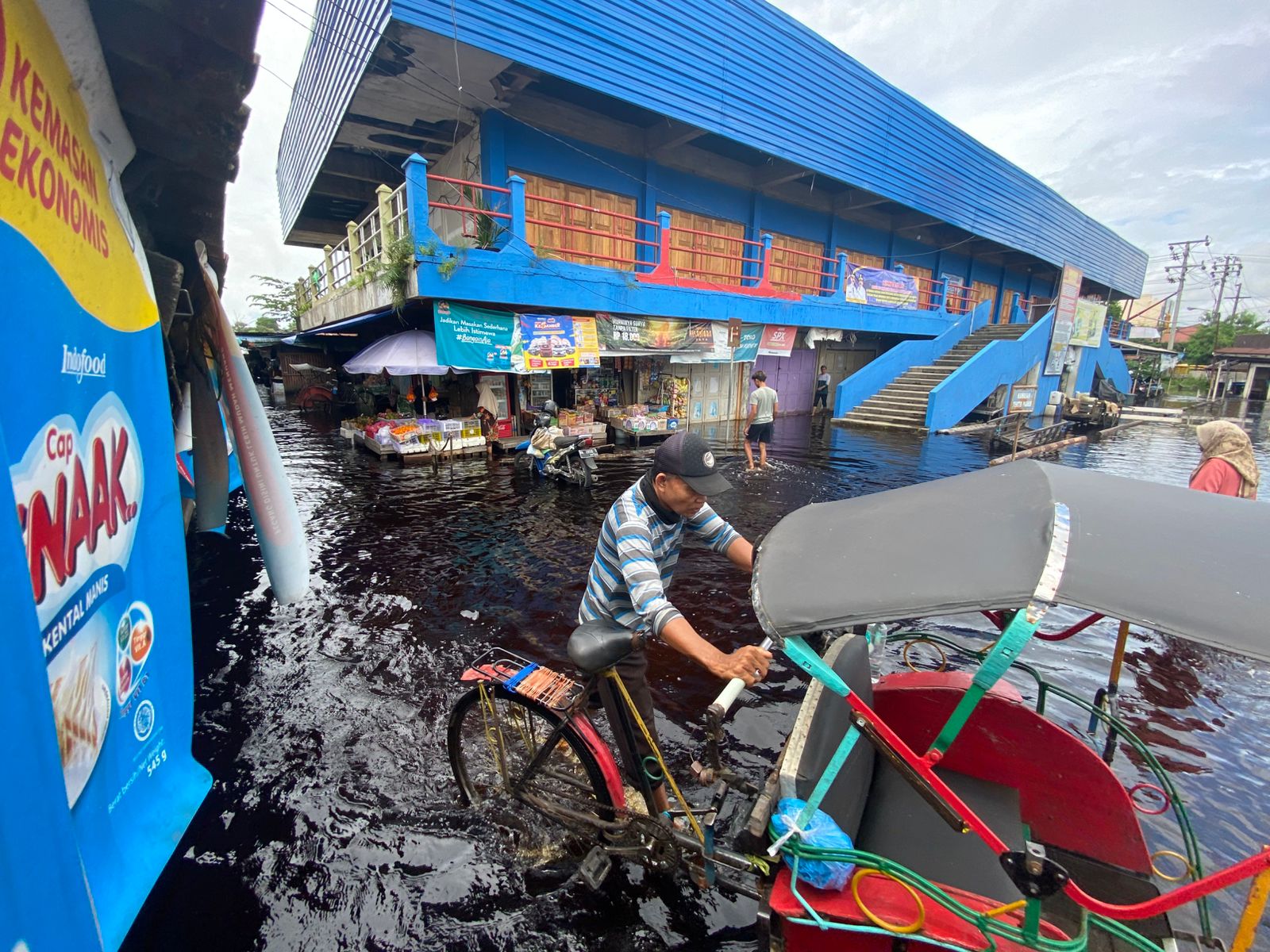 Salah seorang pedagang Rina mengakui, banjir yang terjadi cukup berdampak terhadap aktivitas jual beli di tokonya.