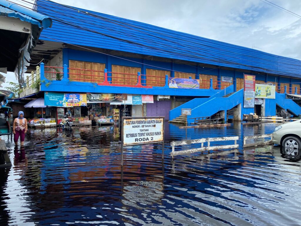 Banjir berasal dari luapan sungai yang ada di samping pasar akibat curah hujan tinggi dalam beberapa hari terakhir.